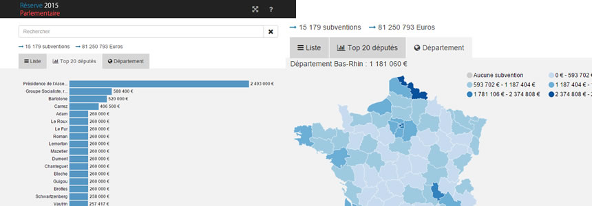 Pour visualiser la répartition de la réserve parlementaire 2015, vous avez donc l'application officielle sur le site de l'Assemblée nationale.